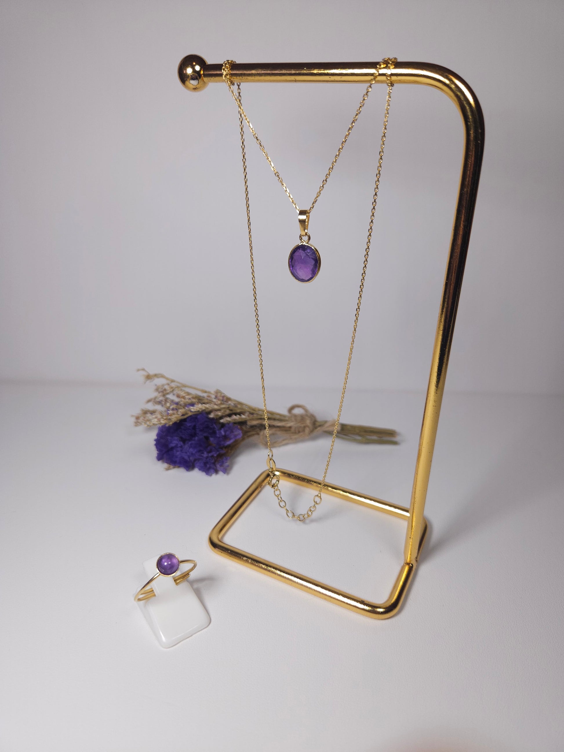Laissez-vous envelopper par une douce énergie avec le collier "Sereine", conçu en argent 925 plaqué or 24 carats et orné d’une pierre naturelle d’améthyste. Appréciée pour ses vertus de sérénité, équilibre émotionnel et concentration, cette pierre invite à la paix intérieure et à l’harmonie.
